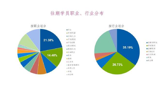 - 从往期参与我们活动的学员的职业分布来看,学生占比21.38%,超过五分之一;从行业分布来看,互联网/科技领域相关从业人员参与比重最高,为35.19%,其次学校教育及金融投资领域占比。