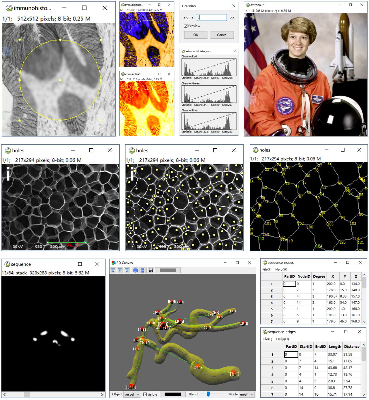 ImagePy could do many other things, the basic mathematical operations, filters, pixel statistics, 3D reconstruction and other functions, It is useful in biology, material, industry... here is a brief gallery.