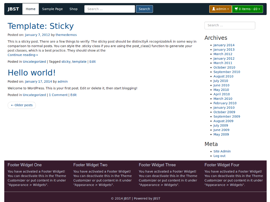JBST is a powerful theme framework that can be used as a standalone website builder or as a framework to create child themes for WordPress. JBST build on the top of Twitter's Bootstrap 3 and is full customizable with LESS. Integrated customizer for easy responsive website building. Right-To-Left (RTL) support. It also has built in support for BuddyPress, BBpress and eCommerce (WooCommerce, JigoShop and WPeCommerce).