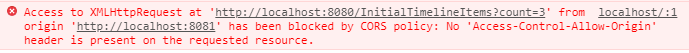 当我们进行前后端项目的协调连接时,发现浏览器上无法获取到后端传给后端的数据,浏览器控制台有报错信息: