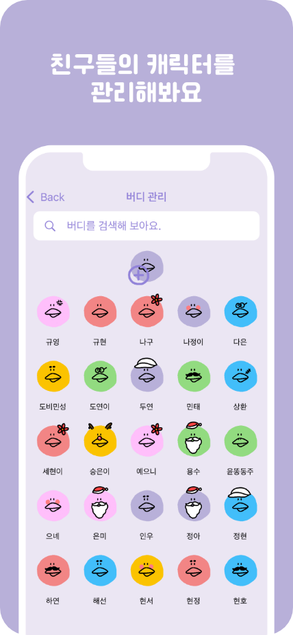 - λͺ¨μμμ λ§λ¬λ μΉκ΅¬λ€μ κ°μμ μΊλ¦ν°λ‘ μ½κ² νμΈν μ μμ΅λλ€.