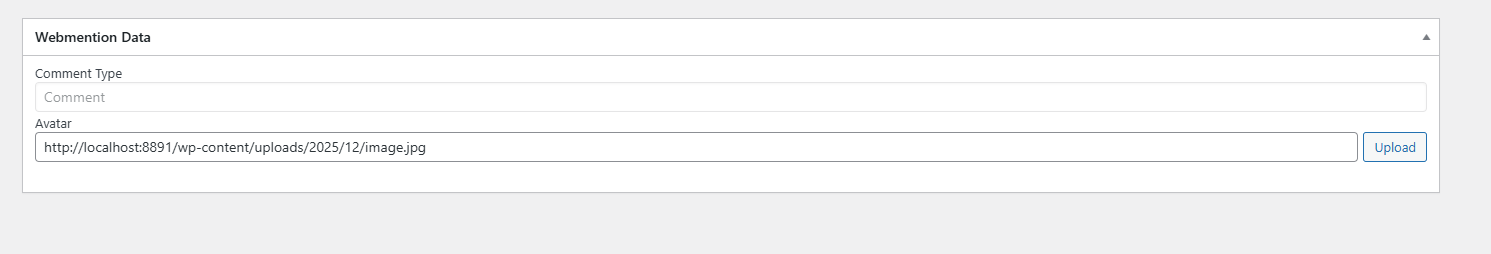 includes/class-admin.php:enqueue_scriptsto load the WordPress Media Library (wp_enqueue_media) on comment editing screens.save_commentmethod hooked toedit_commentto sanitize and save the avatar meta field when the metabox is submitted.templates/webmention-edit-comment-form.php:if ( 'webmention' === ... )check, making it available for all comment types.disabledattribute to allow manual editing.Testing Instructions