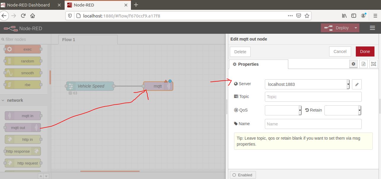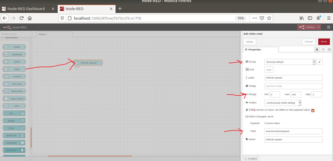 Let's go through an example of a simple Node-Red flow to simulate vehicle speed on the dashboard GUI: